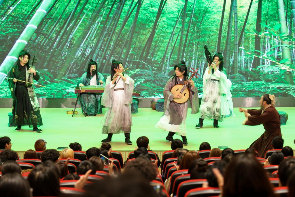 该剧以独具匠心的艺术手法,通过"诗、歌、乐、舞"的完美融合,生动再现了竹林七贤超然物外的精神境界。舞台上,七位贤士或吟咏抒怀,或琴箫和鸣,或长袖起舞,将中华优秀传统文化中"天人合一"的哲学思想化为可感可触的艺术语言,为师生带来一场高水准的视听享受。