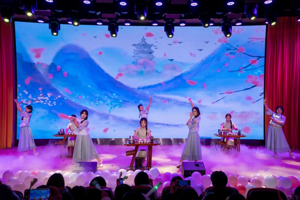晚会伊始,数字财商学院领导代表张言雄发表致辞,寄语全体师生在新的一年里不忘初心、砥砺前行,共同谱写学院发展新篇章。晚会现场星光熠熠,师生同台献艺,节目精彩纷呈。开场舞蹈《啦啦操》活力四射,瞬间点燃全场氛围;茶艺表演一招一式韵味悠长,充分展现了传统文化的独特魅力;男生合唱《人民军队忠于党》,歌声铿锵有力、饱含深情,传递出坚定的信念与担当;最后,全体教师合唱《明天会更好》,将晚会气氛推向高潮。此外,工学结合视频穿插播放,生动展现了数字财商学院的育人特色,让师生深切感受到学院办学成果。