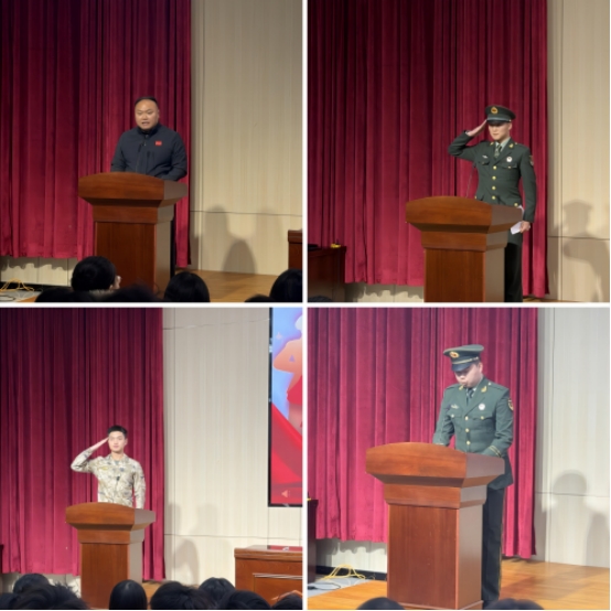 退役复学学生代表张政阳、孙一博结合自身军旅经历,分享了在军营中的成长与蜕变。他们用朴实真挚的语言讲述了军营生活的磨砺、战友间的情谊以及国防责任的深刻感悟,从体能训练到意志锤炼,从责任担当到家国情怀,生动展现了军营对青年成长的塑造作用,为在场学生提供了真实鲜活的参考。
